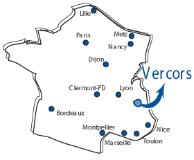 " Vercors is a massif of mountains and plateaus east of the Rhône Valley, spreading on Isère and Drôme districts. It is located between the valleys of the rivers Drôme and Isère, in the Rhône-Alpes Region of France. " Lans-en-Vercors, central point of Vercors 2008 great gathering, is located in North-Vercors, 30 minutes by car from Grenoble, in the heart of the Vercors Regional Natural Park ( PNRV ). |
